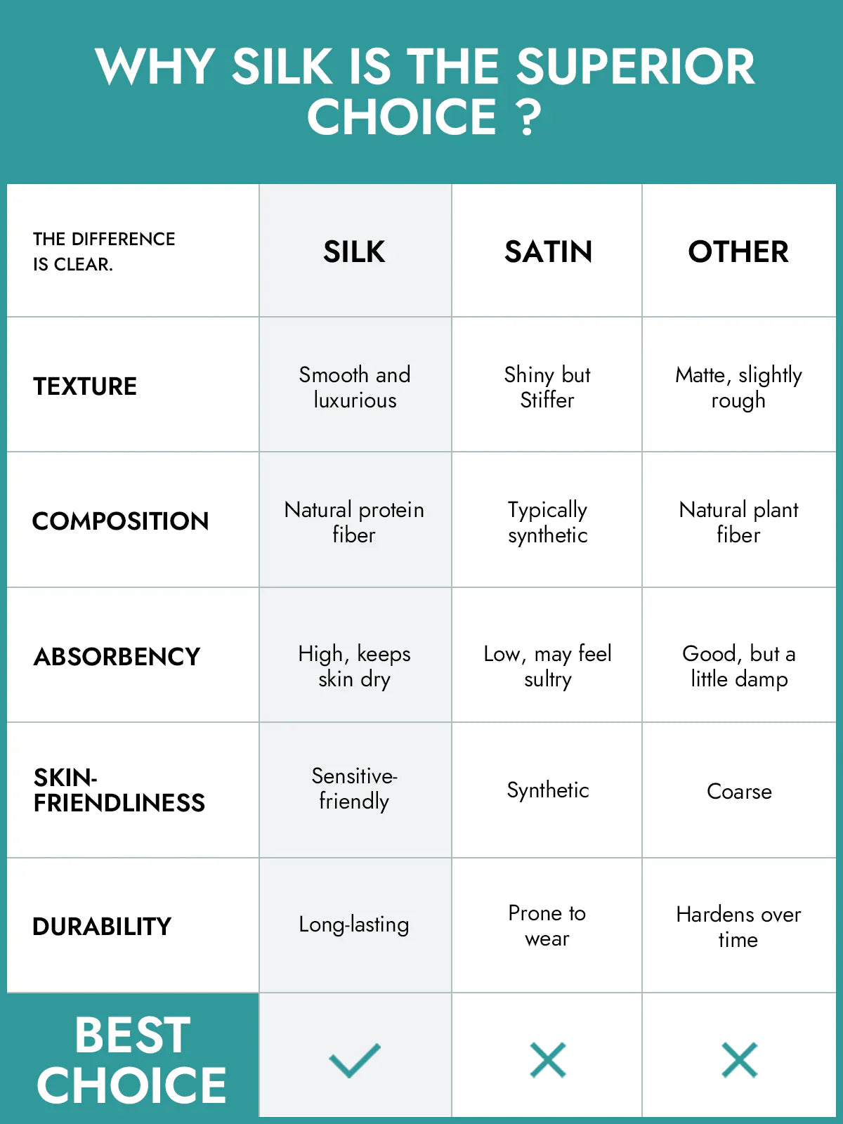 - Details: Invest in our silk pillowcase and experience the benefits of waking up with refreshed, hydrated skin. Crafted from high-quality silk, our silk pillowcase helps your skin retain moisture, reducing the risk of dryness and promoting a healthier complexion. Its smooth surface minimizes friction, preventing sleep lines and ensuring a more comfortable night's rest.